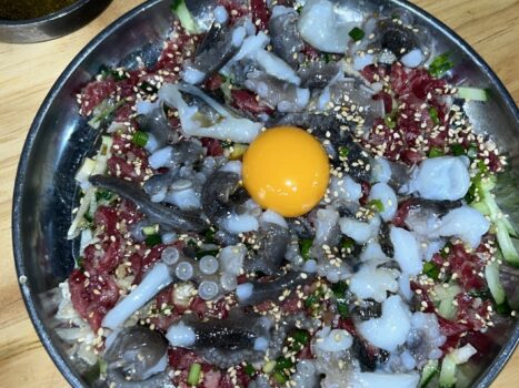 こんにちは、阪本です。 先日サンナクチに挑戦してきました。 サンナクチは、韓国語で【生きたタコ】という意味です。 注文すると目の前でタコを切ってくれます。 &n
